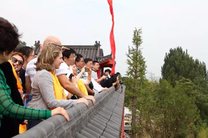 與會(huì)領(lǐng)導(dǎo)、外賓遠(yuǎn)眺天臺(tái)山風(fēng)景