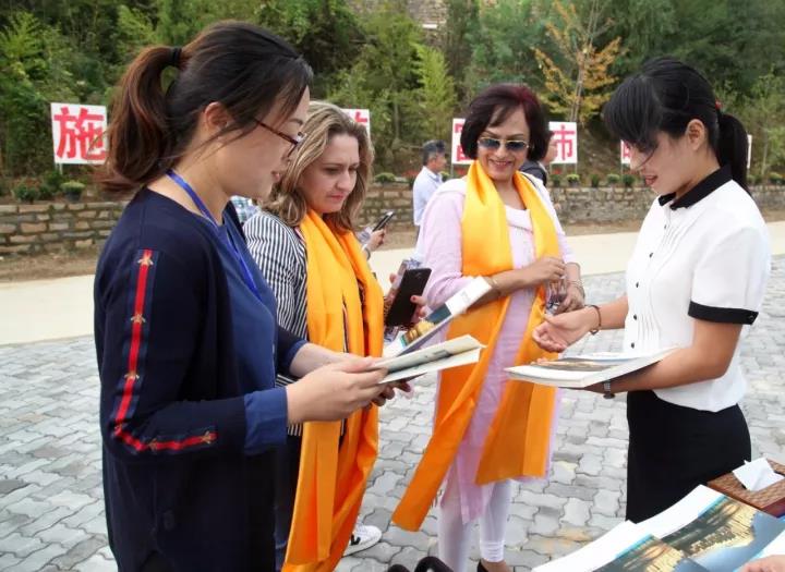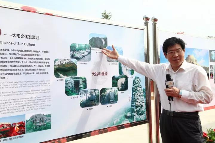 楊留星部長(zhǎng)向外賓介紹天臺(tái)山太陽(yáng)文化