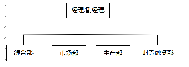 內(nèi)設(shè)機(jī)構(gòu)(4個(gè)):綜合部、財(cái)務(wù)融資部、生產(chǎn)部、市場(chǎng)部。