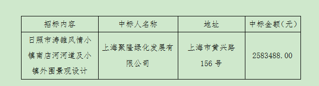 日照市濤雒風(fēng)情小鎮(zhèn)南店河河道及小鎮(zhèn)外圍景觀設(shè)計(含星月一橋、星月二橋)項目中標公告