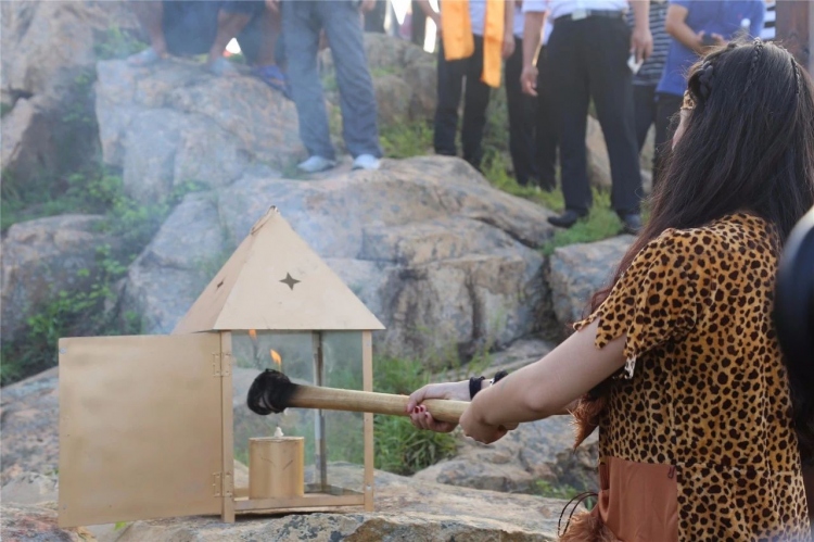 祀日大典完成后,取太陽火種引入長明燈,由專人保護火種下山,經(jīng)旅游景觀大道,送往劉家灣趕海園。