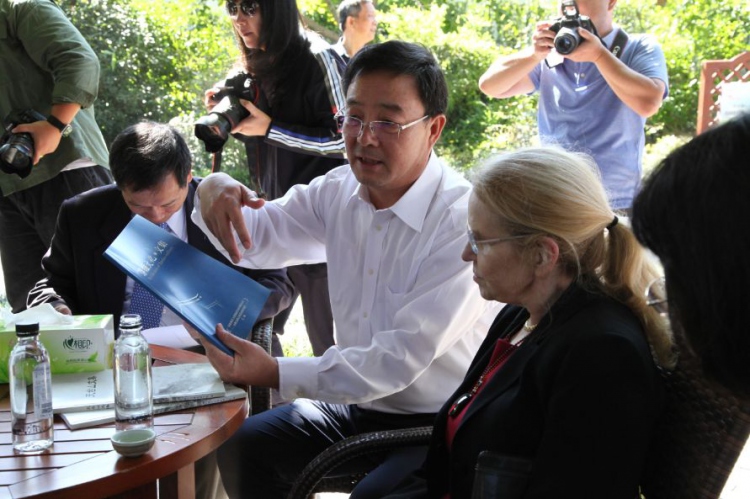 在副市長(zhǎng)李峰、市政府副秘書長(zhǎng)宋君、市住建局局長(zhǎng)劉加寶、市外僑辦主任秦秀云等領(lǐng)導(dǎo)的陪同下,丁肇中先生攜夫人共同參觀了祖居的所有展廳及房間,并留下珍貴的影像資料。