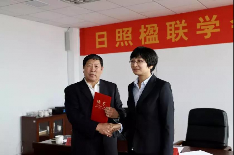 日照楹聯(lián)學(xué)會(huì)會(huì)長(zhǎng)范軍杰為名譽(yù)會(huì)長(zhǎng)辛崇發(fā)頒發(fā)聘書(shū)